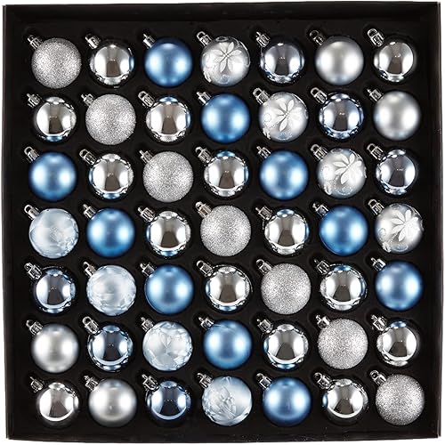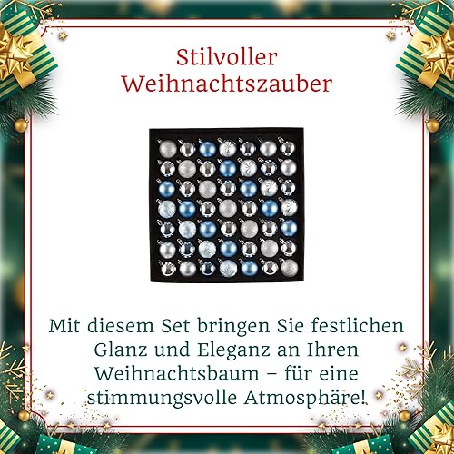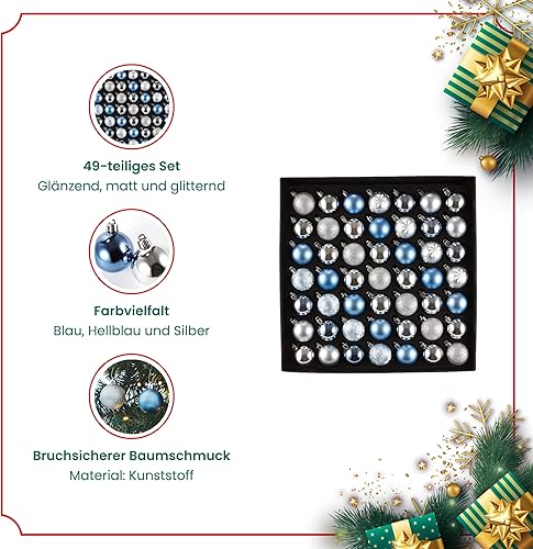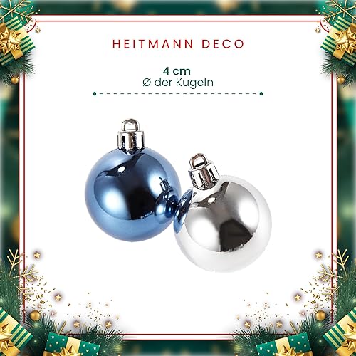 Heitmann Deco - Lot de 49 Boules de Noël - Décoration de Noël Bleue et argentée à Suspendre - Boules en Plastique
