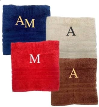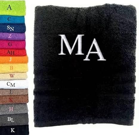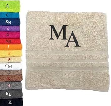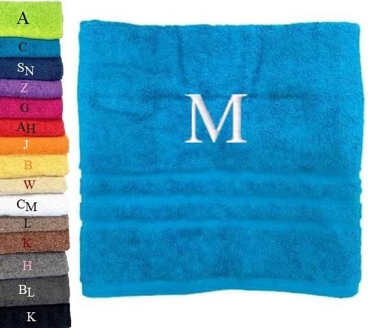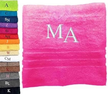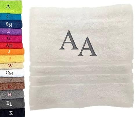 Pet-Jos Serviette de Bain Monogramme Serviette de Bain personnalisée Serviette de Bain brodée Serviette de Bain Lettre (140 x 70 cm, Blanc)
