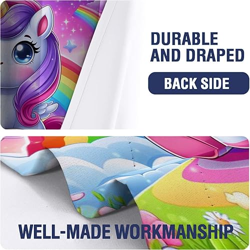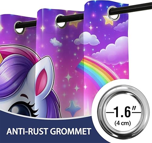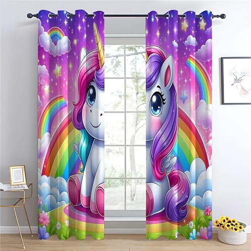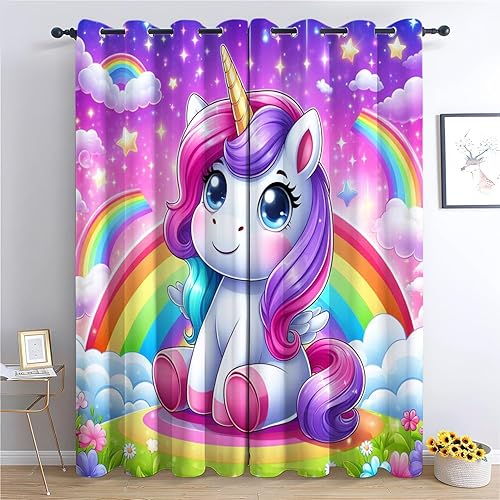 Rideaux Occultants Oeillets - 2 Panneaux 75x166cm, Licorne sportive arc-en-ciel de dessin animé Rideau, Rideaux Isolant Thermique en Fibre Polyester pour Chambre D'Enfant et Salon Décore, Coloré