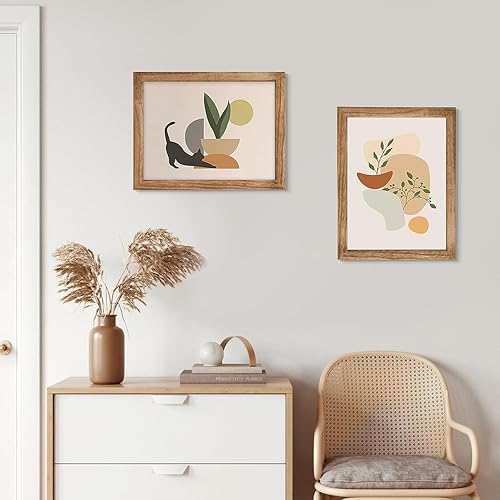 Emfogoo Lot de 2 cadres photo en bois avec support, pour certificats, portraits, paysage, peuvent être accrochés au mur ou sur une table (rétro marron)