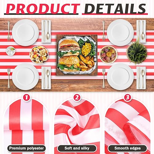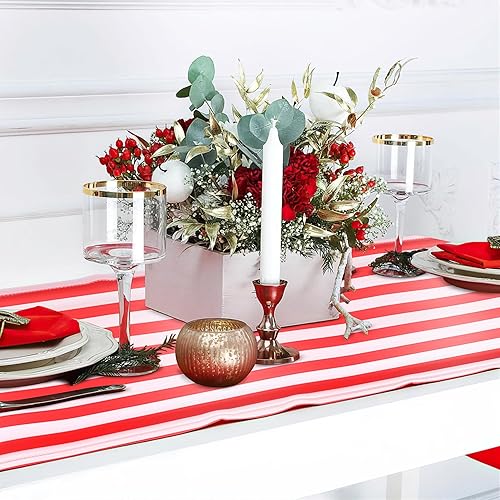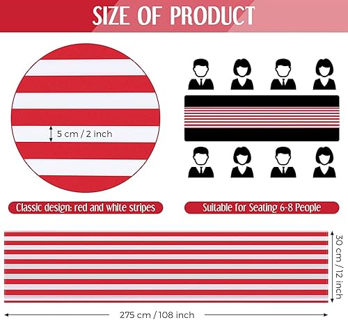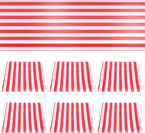 Kopinma Lot de 6 Table Rayé Mariage Polyester Décoration de Table Rouge Blanc Rayé Design Nappe Décoration 12 X 108