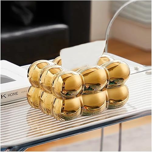 ZADFHSI Boîte à mouchoirs Kawaii Guimauve - Table moderne - En céramique - Décoration d'intérieur - Boîte à mouchoirs de luxe dorée - Esthétique (doré)