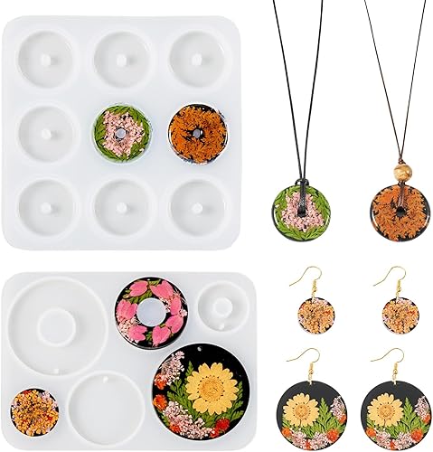 PandaHall Lot de 2 moules ronds en silicone pour pendentifs en forme de donut, collier, porte-clés, résine époxy UV pour loisirs créatifs, boucles d'oreilles, bijoux