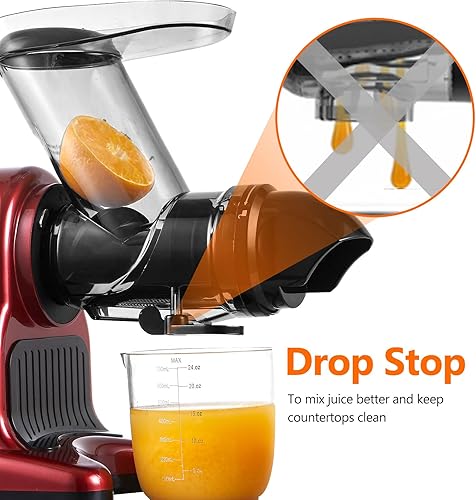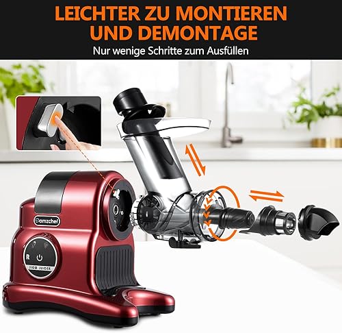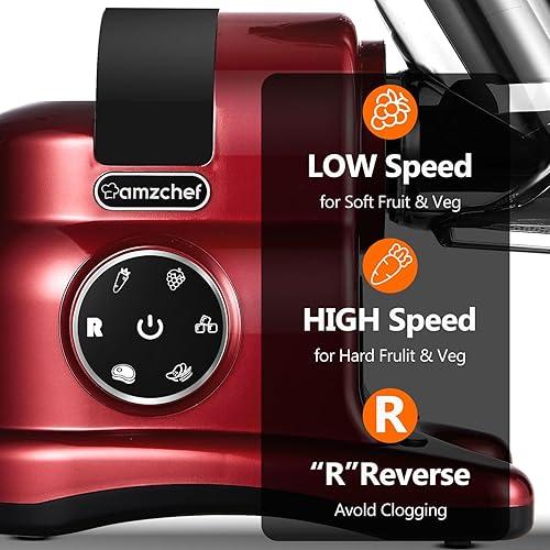 AMZCHEF Extracteur de jus à goulotte large de 80 mm - 150W extracteur de jus de fruits et légumes haute nutrition à mastication lente avec 2 modes de vitesse et fonction Reverse - Rouge