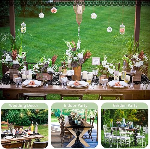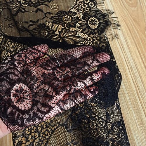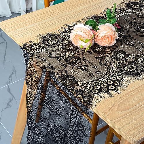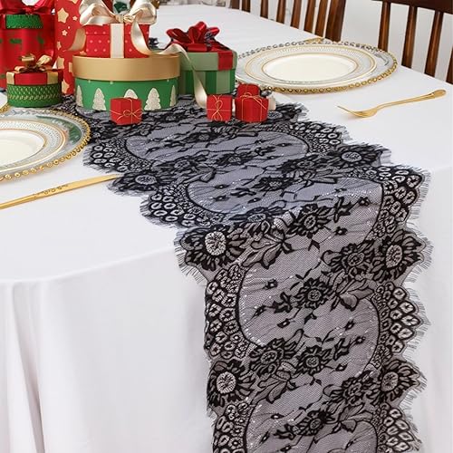 ShinyBeauty Noir Dentelle Table Runner 13x120 Pouces Petit Chemins de Table en Lin Table Cover Halloween Table Topper Superposition pour Les fêtes Rustique Boho Dinning Runners
