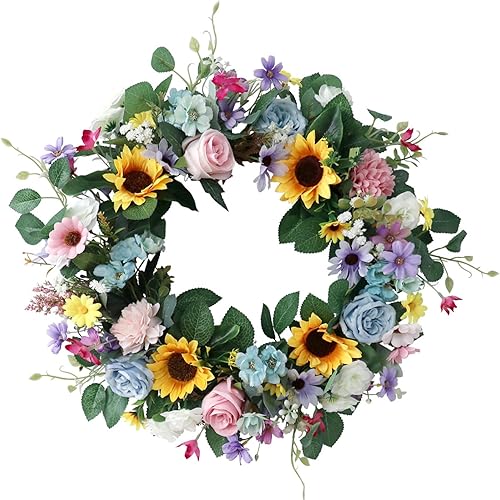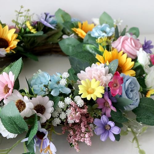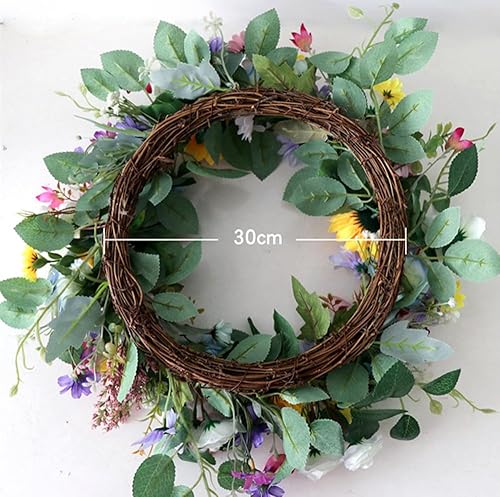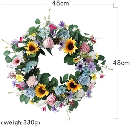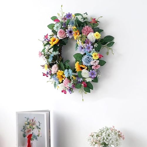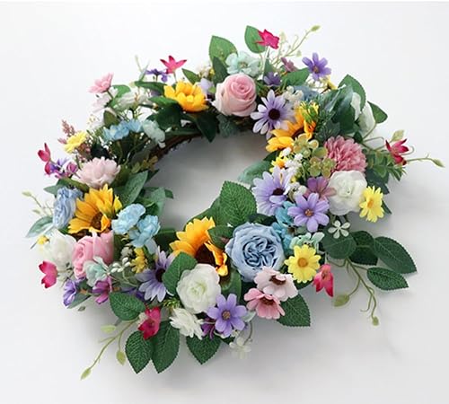 Fouriding Couronne de Printemps pour Porte d'Entrée 45CM,Couronne de Fleurs Artificielles Couronne d'Eté pour Décoration de Fenêtre Porte d'Entrée Extérieure Home Decor (C)
