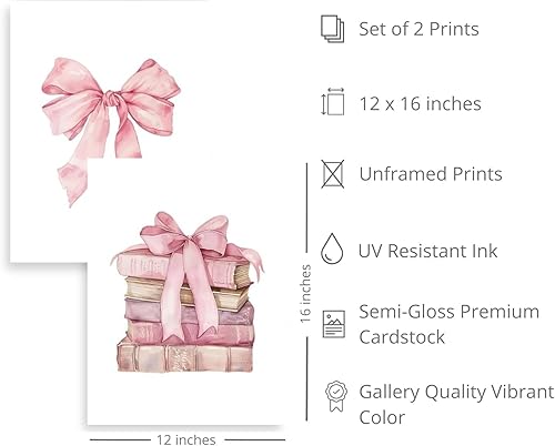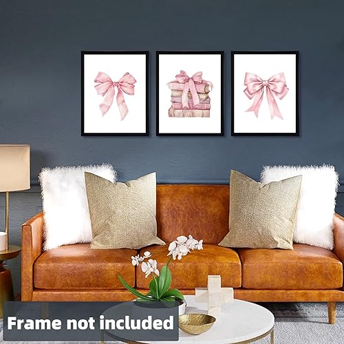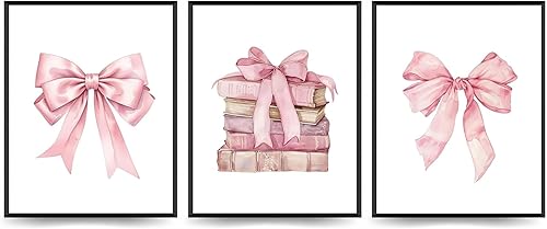 Linilioart Lot de 3 impressions sur toile avec nœud rose et coquette - Décoration murale tendance pour chambre à coucher ou dortoir - Sans cadre (30 x 40 cm)
