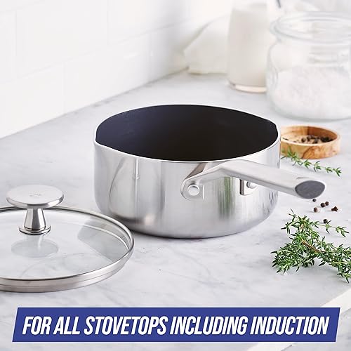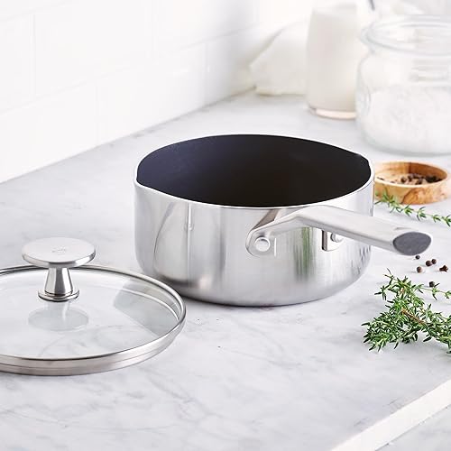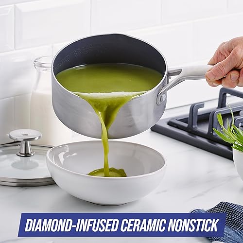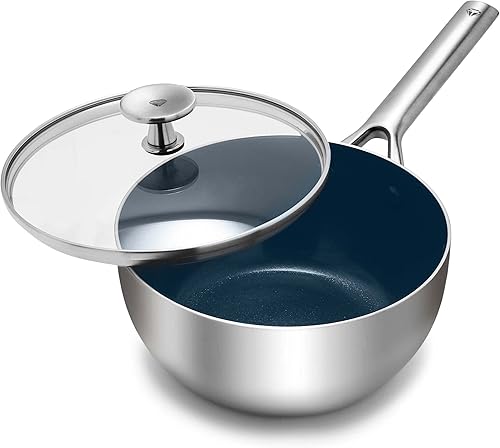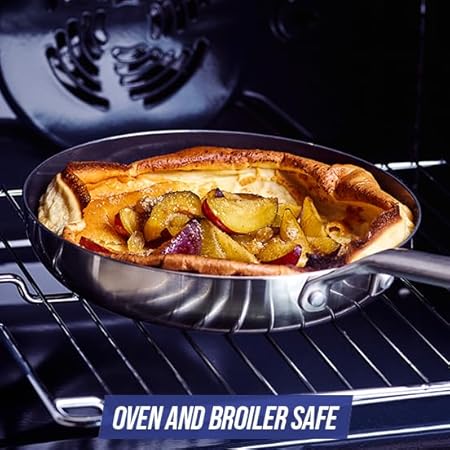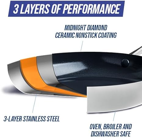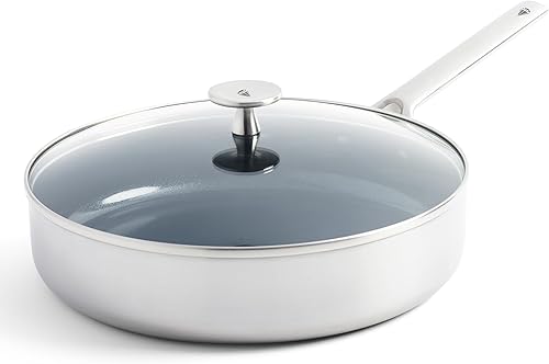 Blue Diamond Triple Steel Sauteuse avec Couvercle en Acier Inox 18/10 Revêtement Antiadhésif Céramique Renforcé avec des Diamants, 28cm/3,6L,Sans PFAS,Multicouche,Induction,Lave-Vaisselle,Four,Argenté