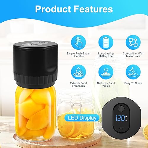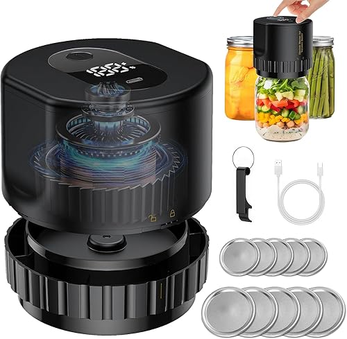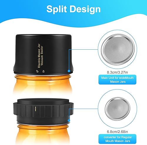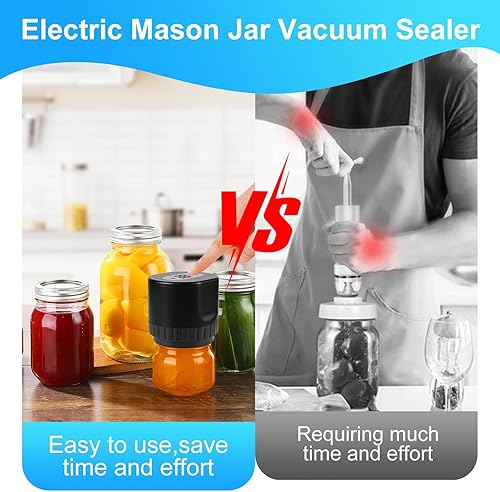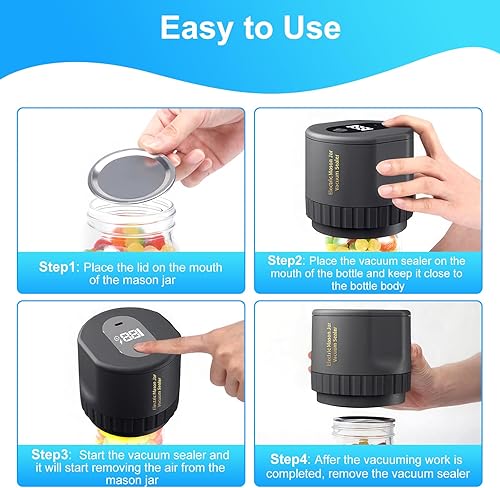 Euakee Kit de Scelleuse Sous Vide électrique pour Bocaux Mason, Scelleuse Sous Vide pour Bocaux Mason à Bouche Large et Régulière, Scelleuse Sous Vide à Arrêt Automatique pour Bocaux