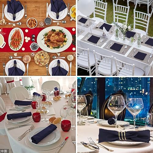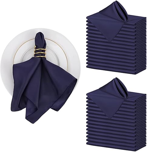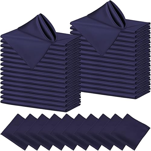 Thaookte Lot de 30 serviettes en tissu damassé - Lavables - Pour décoration de table, anniversaire, fête, mariage - Bleu marine - 43 x 43 cm