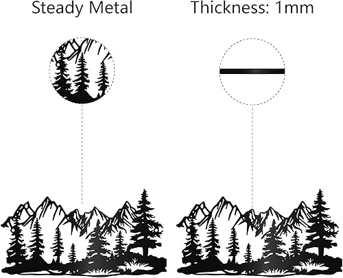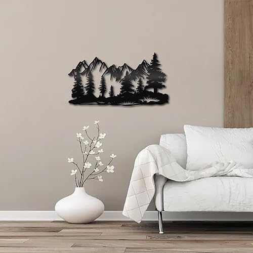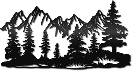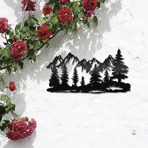 CREATCABIN Décoration Murale Métal Montagne et Forêt Décoration Murale Métal Noir Sculpture Fer Suspendre Un Arbre Ornement Extérieur Panneau pour Salon Maison Bureau Jardin Balcon Décoration 30x16cm
