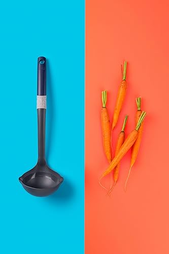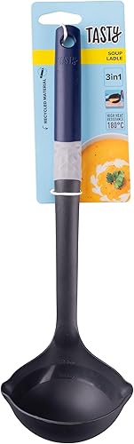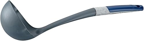 Tasty Louche avec échelle de mesure - 34 x 10,5 cm - Idéal pour remplir et servir en toute sécurité - Résistant à la température jusqu'à +180 °C - Gris/bleu - Passe au lave-vaisselle