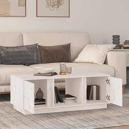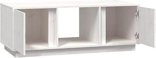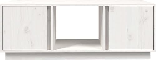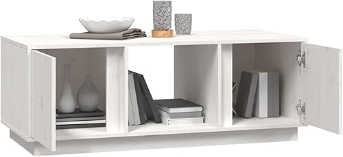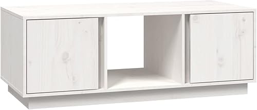 Sufrk Table de salon blanche 110 x 50 x 40 cm en bois massif de pin, table basse, table de structure, table de canapé, salon, chambre
