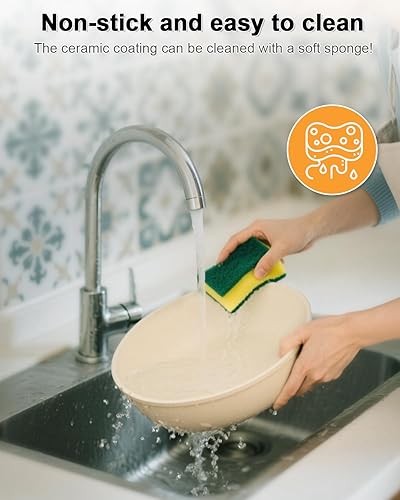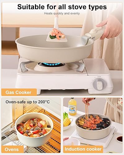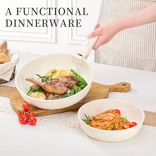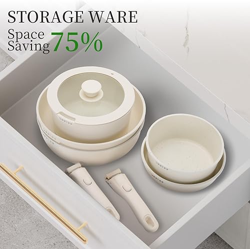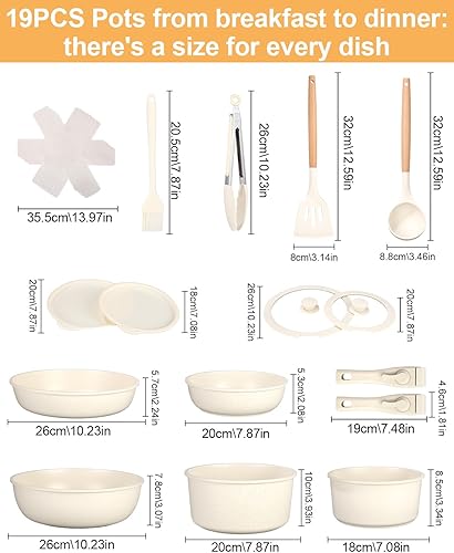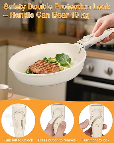 19 Pièces Poele Ceramique et Batterie de Cuisine Induction, Set de Casseroles Tout Feux, Sans PFOA et PTFE, Poêles Antiadhésives avec 2 Poignées Détachables, pour Four et Lave-vaisselle