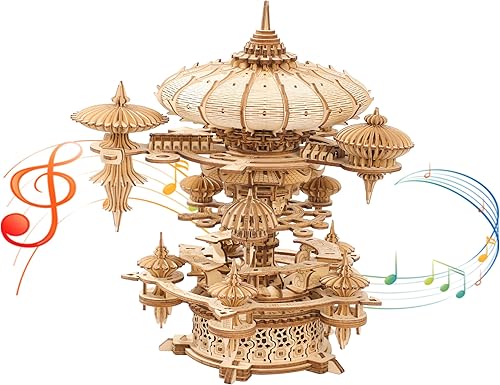 Yomkeg Sky City Boîte à musique mécanique en bois 3D pour adultes avec mécanisme d'enroulement