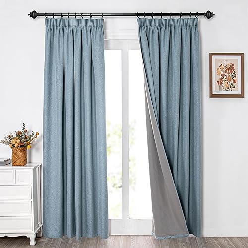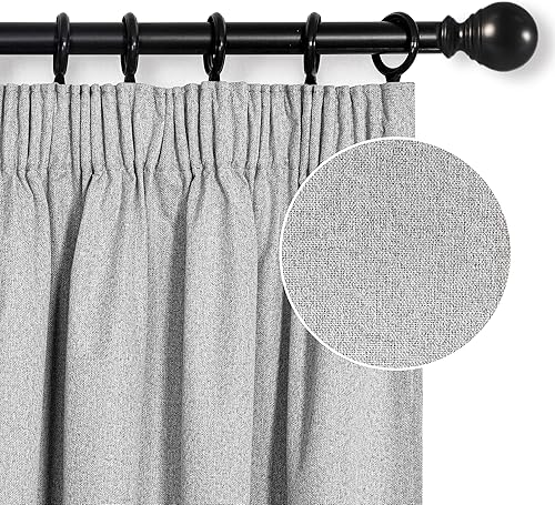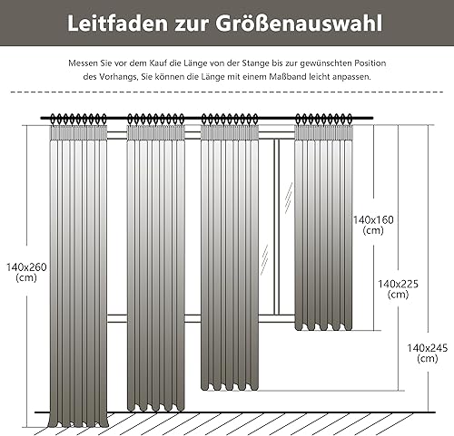 MYSKY HOME Rideaux Thermiques Rideau Occultant Salon Décoration Phonique Anti Bruit Galon sans Percage pour Salon Chambre Fille Maison, Gris foncé, L 140 x H 245 cm, 2 Pièces