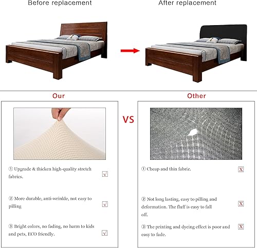 TIANSHU Housses de Tête de lit, Housse de Protection pour tête de lit Extensible Anti-poussière pour décoration de Chambre à Coucher (140-165cm, Noir)