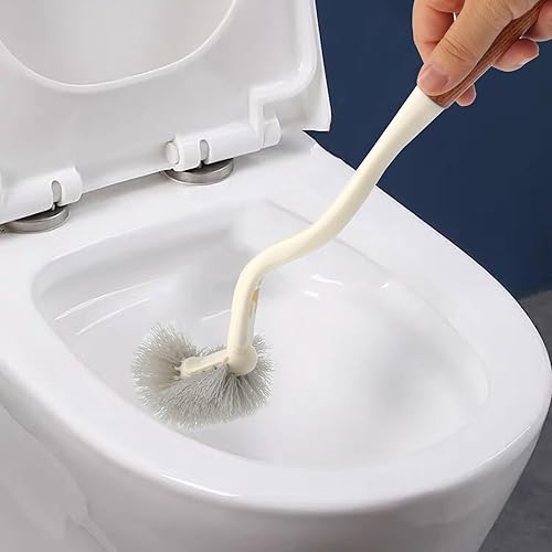 Lot de 2 brosses de toilette à long manche en bois, brosse de toilette incurvée pour un nettoyage en profondeur