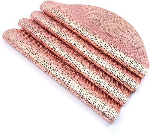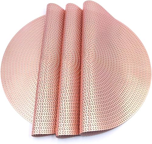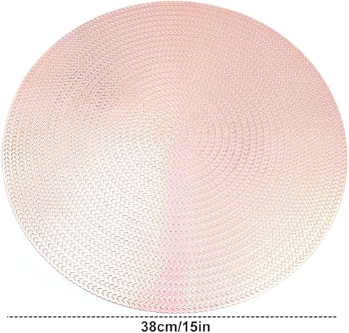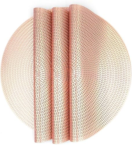 Shiwaki Lot de 4 Sets de Table Ronds, diamètre de 15 Pouces, antidérapants, lavables, Tapis de Table en PVC, indéchirable, résistant à la Chaleur, napperons Anti-salissures - Rose doré