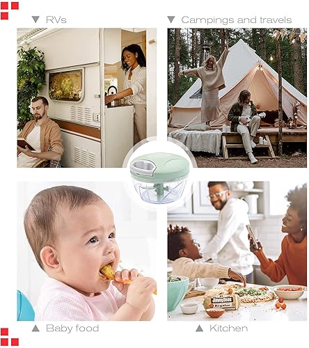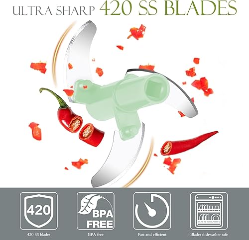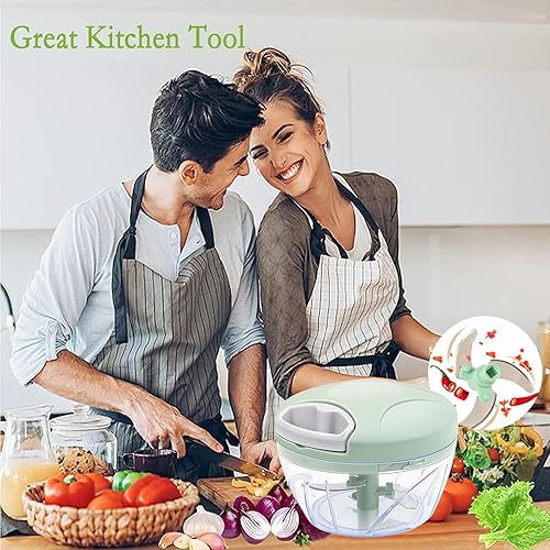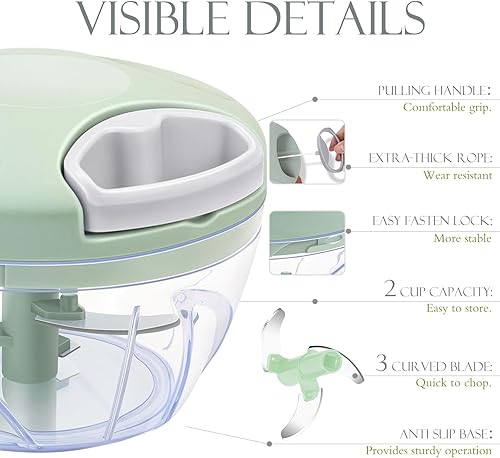 Hshenjhu Hachoir Oignon, 500 ml Mini Mixeur Manuel Multifonction, Hachoir Manuel, Hacheur Legume avec Cordon de Tirage, pour l'ail, Viande, Aliments pour Bébé, Fruit, Légumes