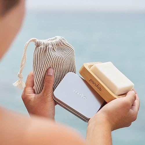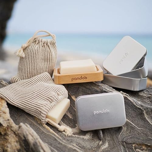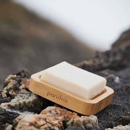pandoo Porte-savon en bambou naturel - Pour savon, gommage, éponge et comme étagère de douche et de lavabo - Bac d'égouttement, porte-savon, porte-savon