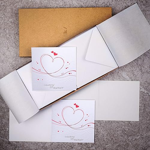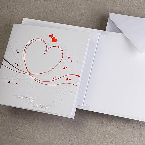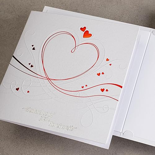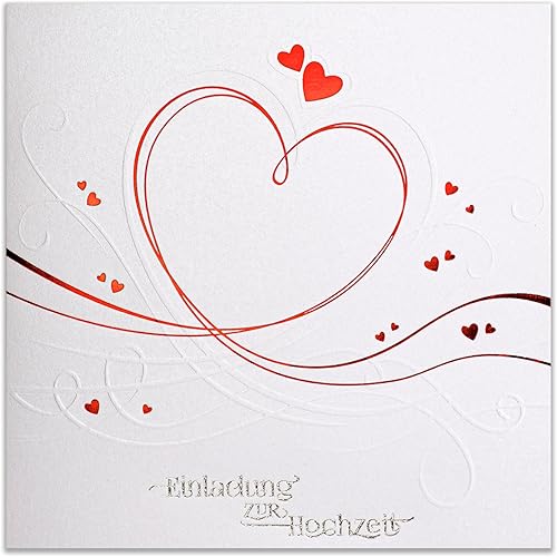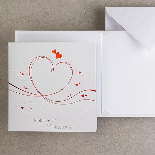 art nuvo ZAP_DE_07 Lot de 20 invitations de mariage 135 x 135 mm avec inserts imprimables et enveloppes pour mariage Film rouge Motif pressé sur papier métallique