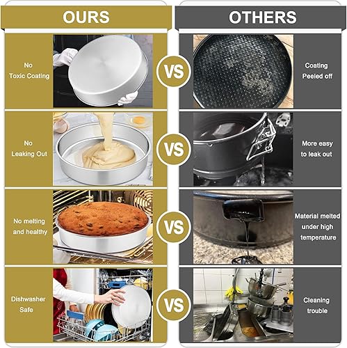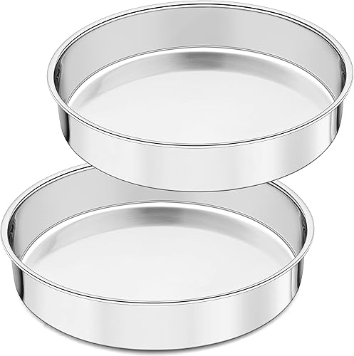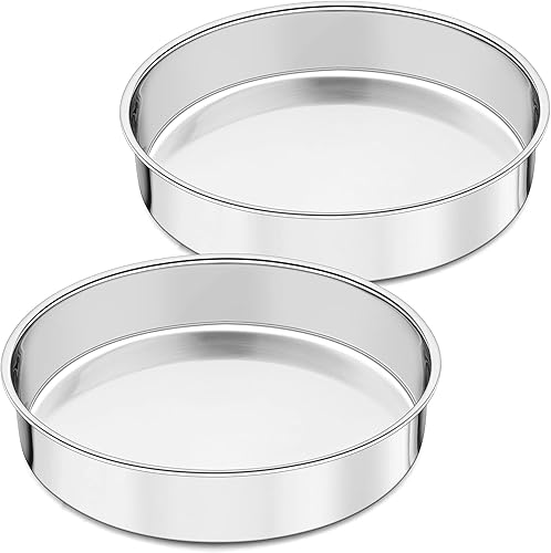 Joyfair Lot de 2 moules à gâteau ronds en acier inoxydable de 24,9 cm pour rôtir, moule monobloc et côté droit, finition miroir et passe au lave-vaisselle (25 cm)
