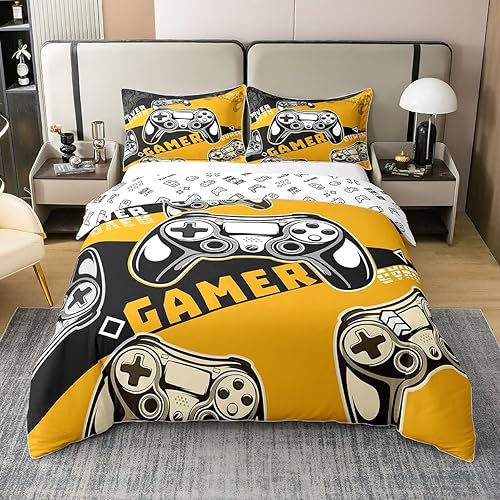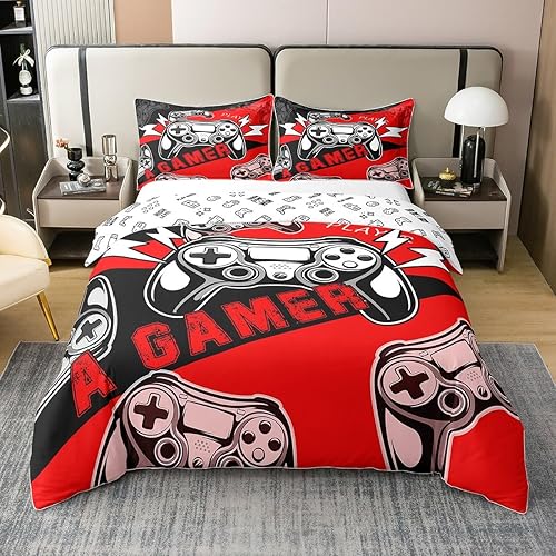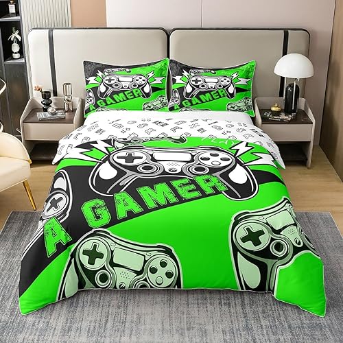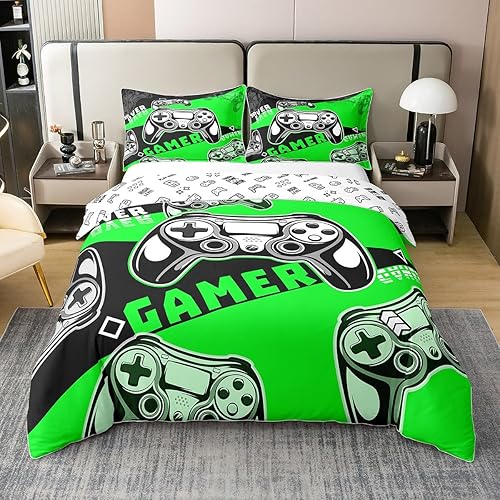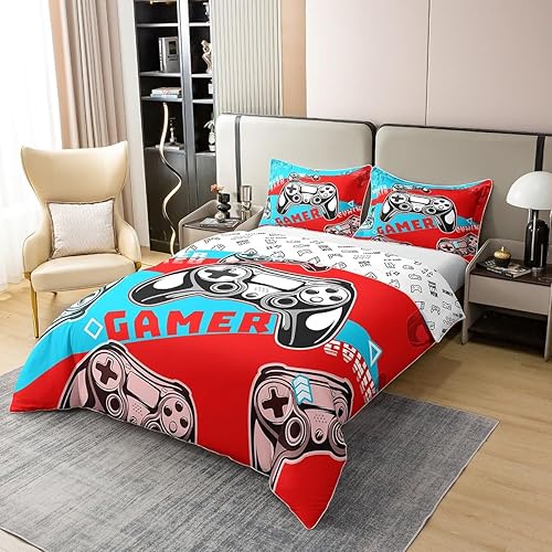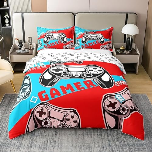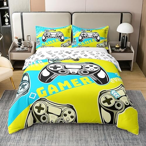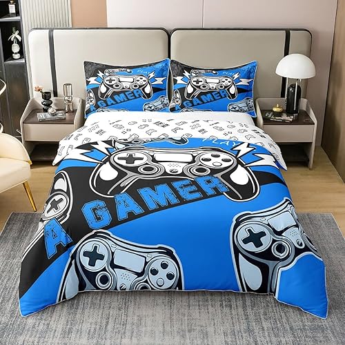 Homewish Housse de Couette 220x240 Enfant Fille Garçon en 100% Coton, Parure de Lit Jeux Vidéo Ensemble de Literie pour Jeux Ados, Housse Couette Console de Jeux, Décoration de Chambre, Bleu Noir