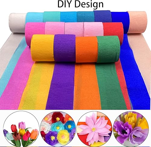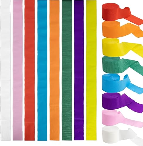 DIKARIYA Lot de 8 rouleaux de papier crépon arc-en-ciel pour le bricolage, les rubans de crépon, le papier crépon, le bricolage, les rubans de mai, les fêtes, les mariages, les enfants, le bricolage