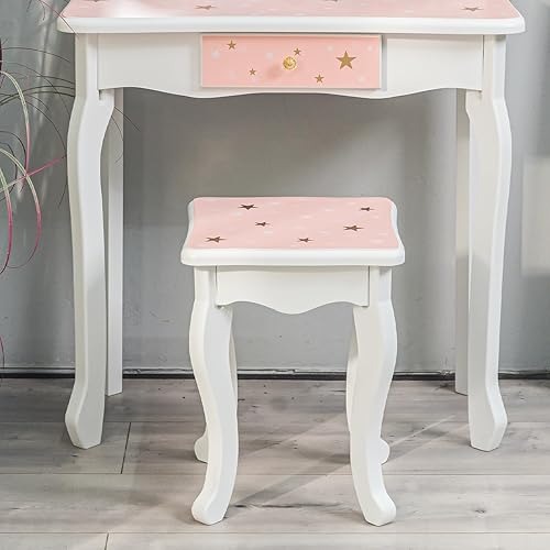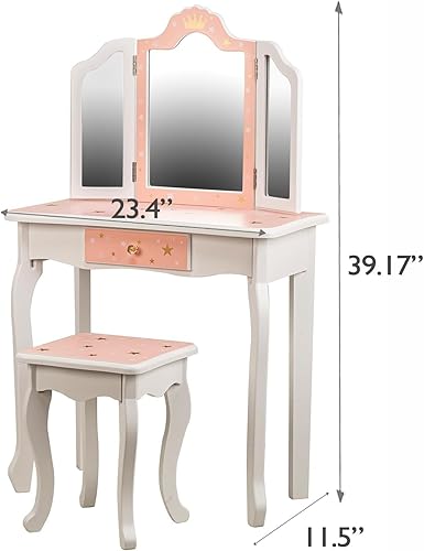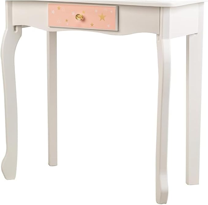 LUNSY Coiffeuse Princesse 2 en 1 pour Enfants - Coiffeuse avec Miroir, Tabouret, Miroir Pliable à Trois Niveaux et tiroir - Coiffeuse en Bois pour Jouer aux Tout-Petits