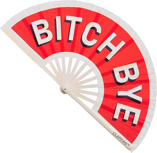 ClapFan Rave Fan Bitch Bye Grand éventail pliable en bambou pour EDM, festival de musique, fête, défilé, performance, croisière, club, événement, danse, pour homme/femme, 33 cm (Blanc)