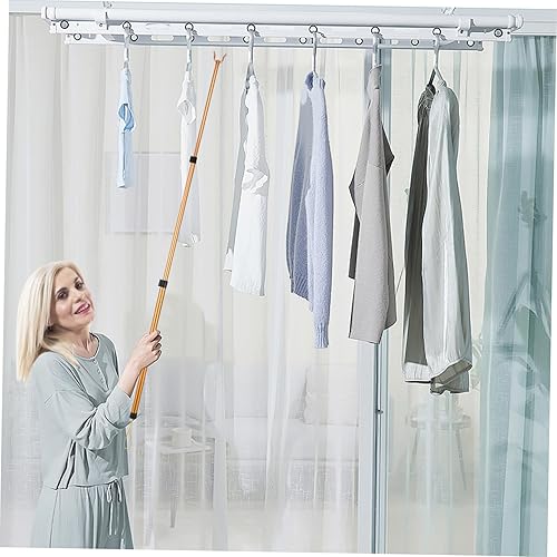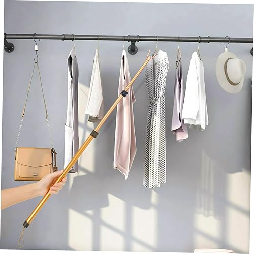NOLITOY 1 Pièce Tringle à vêtements télescopique Perche télescopique Atteindre Un Poteau à vêtements sur Pied Poteau de Cintre Poteau de Corde à Linge télescopique Alliage d'aluminium Doré