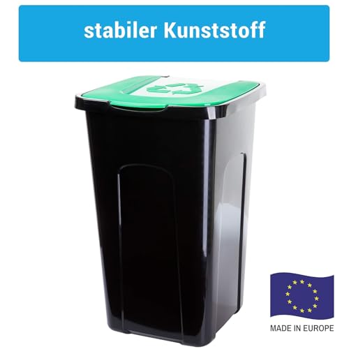 Lot de 3 poubelles avec couvercle, 50 l, avec couvercles à code couleur, pour un tri efficace des déchets à l'intérieur et à l'extérieur, durable et résistante aux intempéries, 56 x 36 x 36 cm