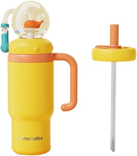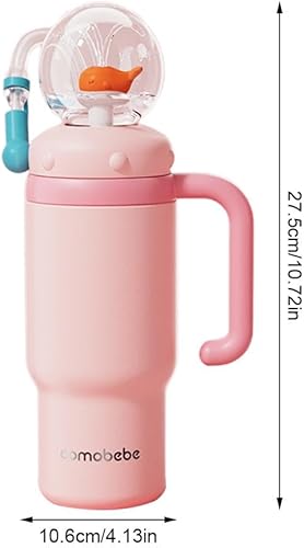 Ainiupi Gobelet fontaine baleine en acier inoxydable de 700 ml avec poignée, deux couvercles, anti-déversement, passe au lave-vaisselle, tasse amusante en forme de baleine, mignon et parfait pour les