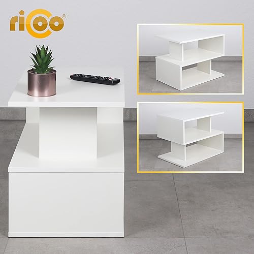 RICOO Table Basse Salon 59 x 45 x 39 cm WM092-WM Table d'appoint avec Rangement Blanc