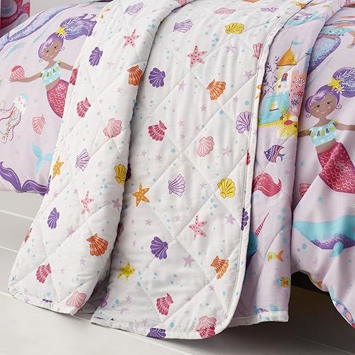 Happy Linen Company Couvre-lit matelassé réversible avec sirènes magiques pour filles Lilas Violet