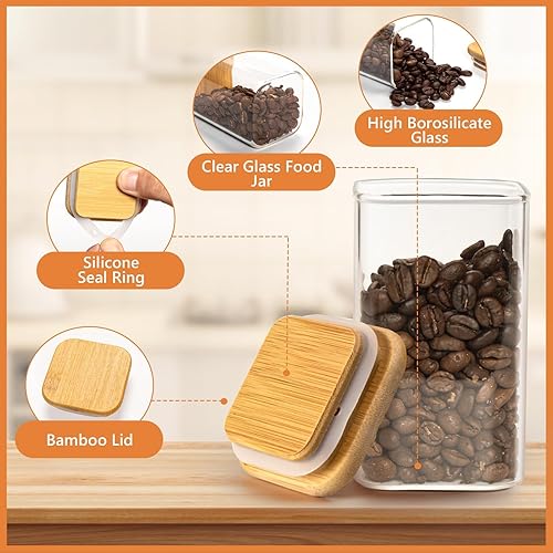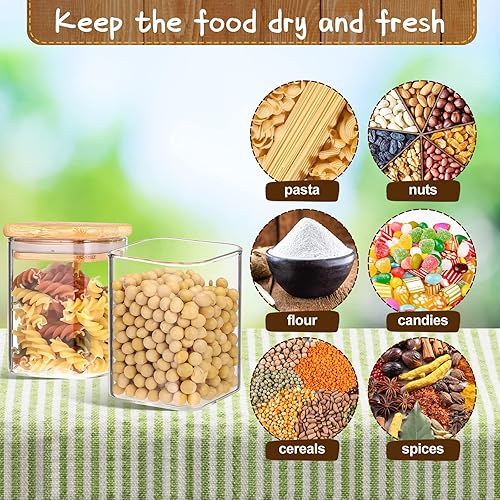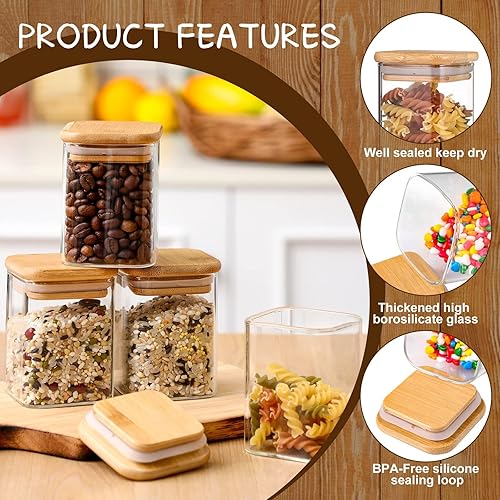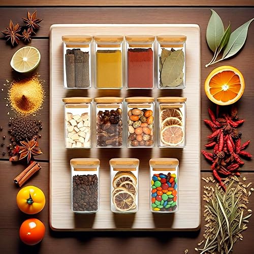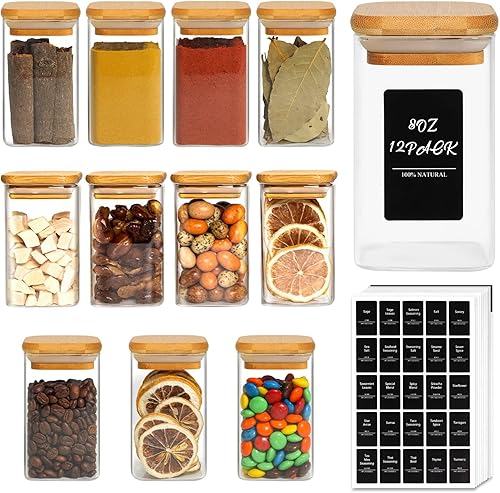 Lot de 12 bocaux en verre avec couvercles en bambou, 250 ml, bocaux à épices en verre hermétiques avec couvercles, pour épices, sel, sucre, graines, noix, thé, etc