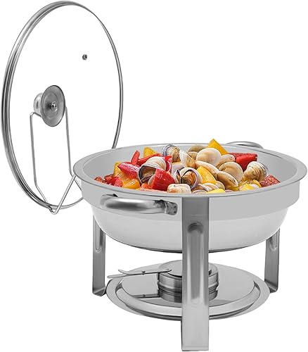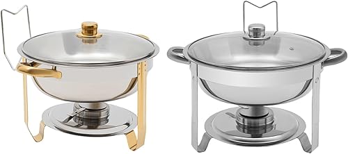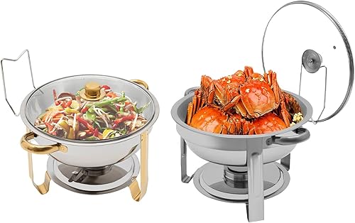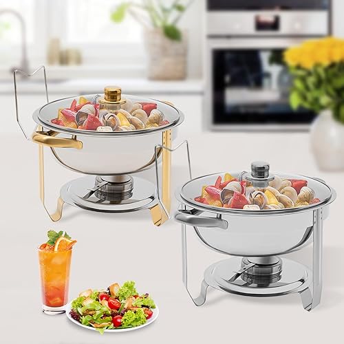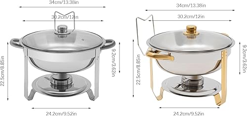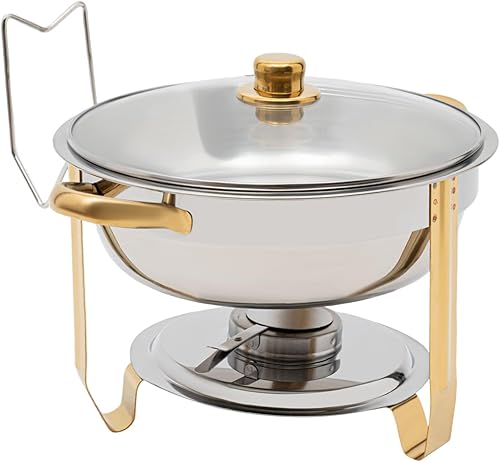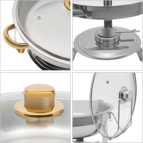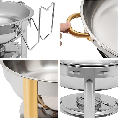 FUROMG Chafing Dish Buffet Ensemble Chauffe-Plats en Acier Inoxydable, Chafers Rond Buffets Chauffants Buffet pour FêTes Mariage Banquets Restauration Chafing Dish Buffet (Or)