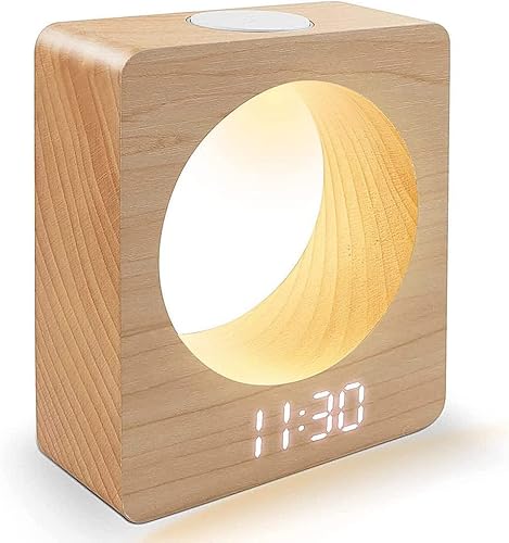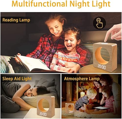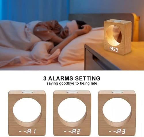 XIAOJUN RéVeil NuméRique LED en Bois en Bois avec Veilleuse 3 RéGlages D'Alarme DéTection de TempéRature pour Chambre