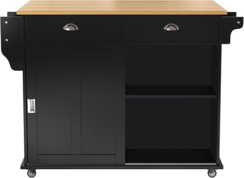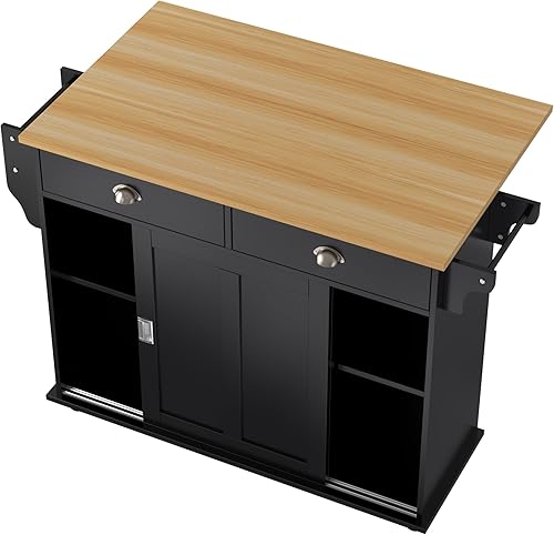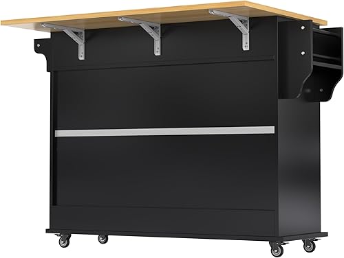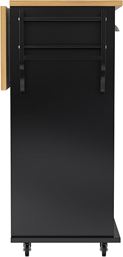 Chariot de salle à manger, buffet, 112 x 40 (70) x 94 cm, noir, plan de travail pliable, aspect bois massif, avec portes de rangement, roulettes et pieds en bois massif interchangeables, convient pour
