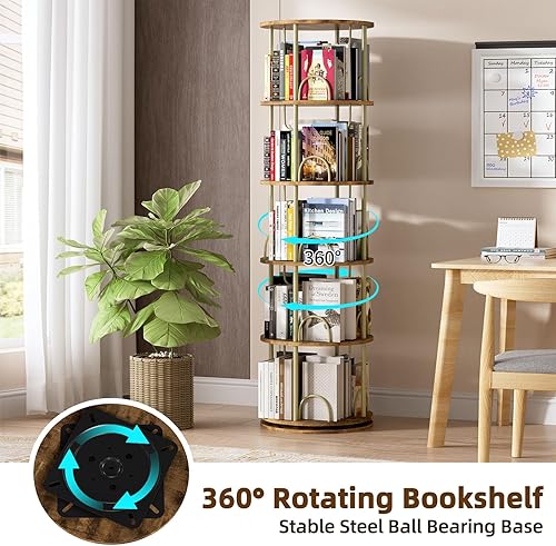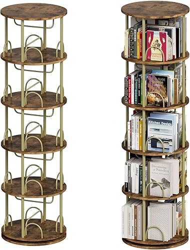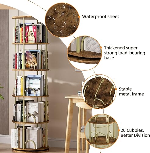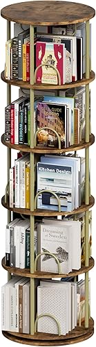 MSFE Bibliothèque rotative à 5 Niveaux, 360 Degrés Bibliotheque Livre, bibliothèque tournante bibliotheque pour Enfant, 20 Compartiments, étagères sur Pied, pour Chambre à Coucher, Bureau d'étude