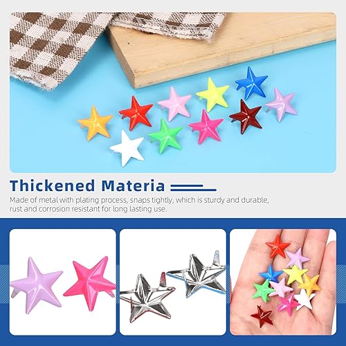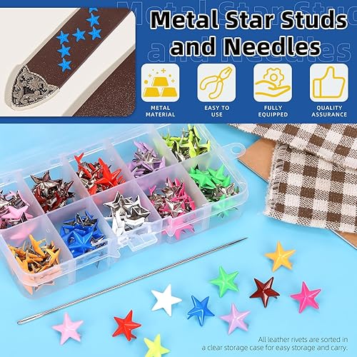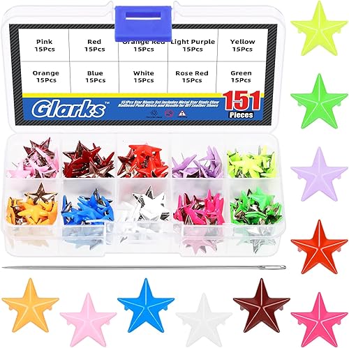 Glarks Lot de 150 clous en forme d'étoile en métal, rivets punk multicolores à 5 griffes, rivets à perles griffes, rivets à tête à clou avec aiguilles à gros chas pour loisirs créatifs, vêtements,