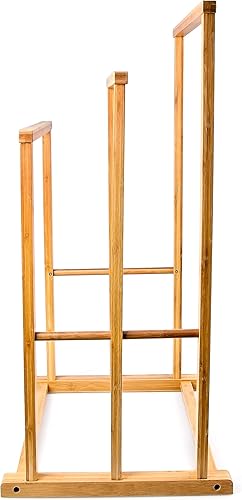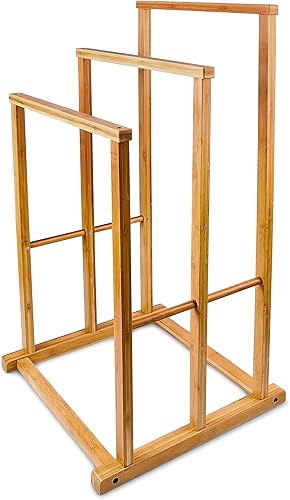 Relaxdays Porte-Serviettes sur pied support 3 Barres HxlxP : 82,5 x 42 x 42,5 cm en bambou salle de bain serviteur de chambre, nature