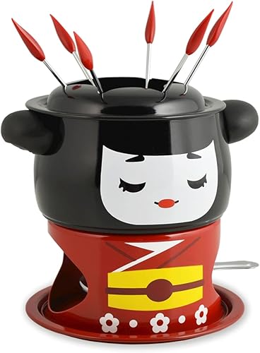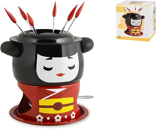 Home Dolly Service à Fondue, Bois/Métal, Noir, 11 Pièces