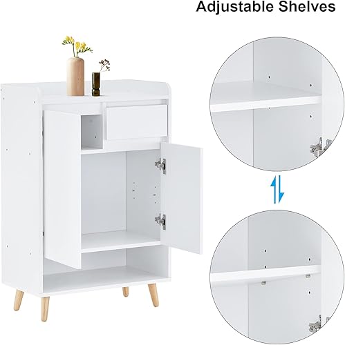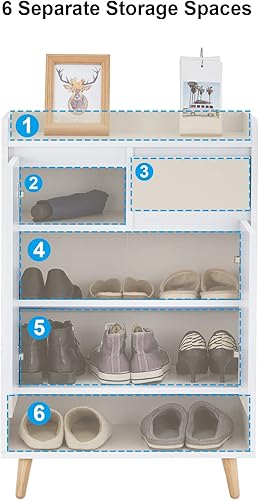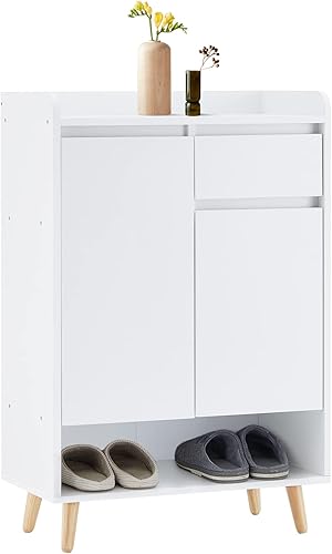 LEMROE Meuble à Chaussures en Bois avec 2 Portes, 5 Niveaux, 1 tiroir et 5 étagères, Armoire à Chaussures pour Couloir, Blanc, 60 cm de Large