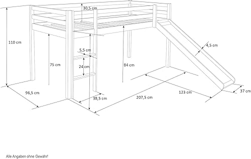 Homestyle4u Lit Mezzanine Enfant 90 x 200 cm en Bois Massif de pin Blanc avec échelle et Toboggan