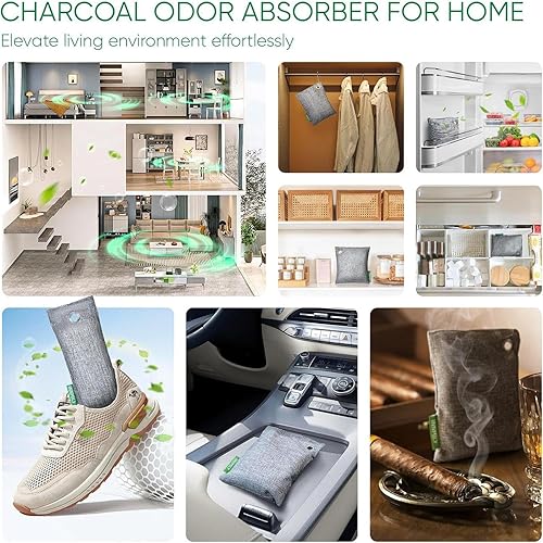 Absorbeur d'odeurs au charbon actif, sac purifiant l'air pour intérieur, design poreux éliminateur pour chambre à coucher, armoire, meuble à chaussures, cuisine, salon, robuste et compact, parfait