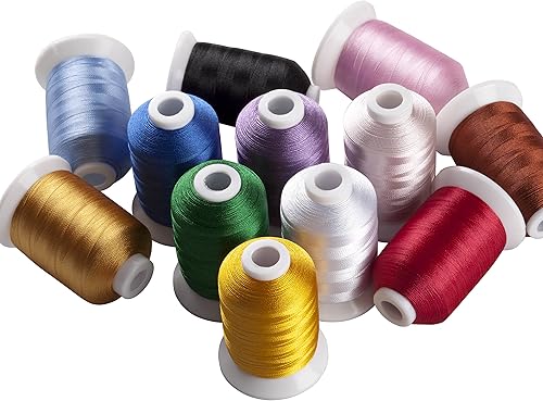 Simthread 12 Couleurs de base Polyester Fil de Machine à Broder pour Brother/Babylock/Janome/Singer/Kenmore Machine à broder, 1000 mètres/bobine