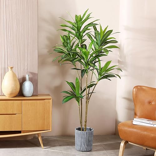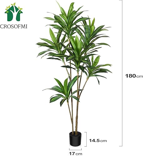 CROSOFMI Arbre Dragon Artificiel 120cm Plantes Artificielles Interieur en Pot Fausse Plante Verte Décoration pour Intérieur Extérieur Maison Chambre Salon Balcon Cour Jardin