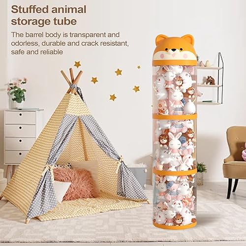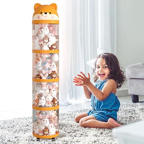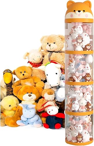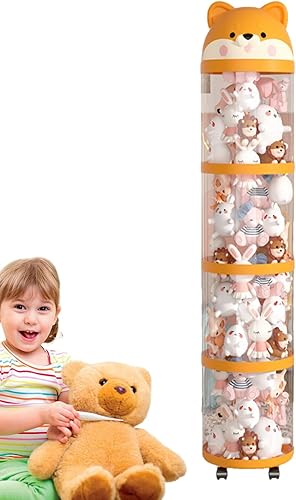 Yanayi Porte Peluches,Organisateur de Peluches Tube de Stockage Jouets - Tour Mignonne à Roulettes Grande Capacité, Organisateur de Doudou Déco Maison pour Chambre d'Enfant et Chambre à Coucher